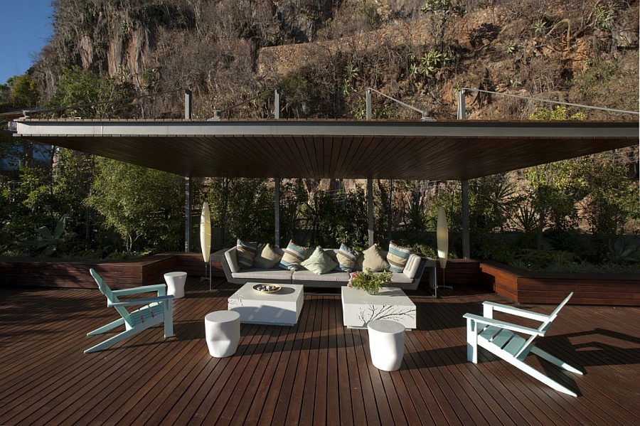 Сырьём служит гранит, литой цемент, и неполированное дерево, что как раз возвещает о промышленной составляющей. А вот большие открытые балконы позволяют наслаждаться живописными пейзажами.