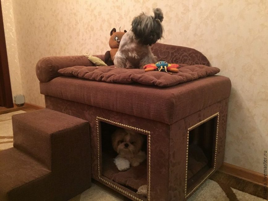 Оптимальным решением для квартиры является устройство для питомца лежанки с крышей и стенами. Выглядеть такое жилище может как конура, нора или люлька. Такие домики-укрытия больше нужны карликовым собакам, которым возможность спрятаться чрезвычайна важна, а комфорт и забота необходимы не меньше, чем ребёнку.