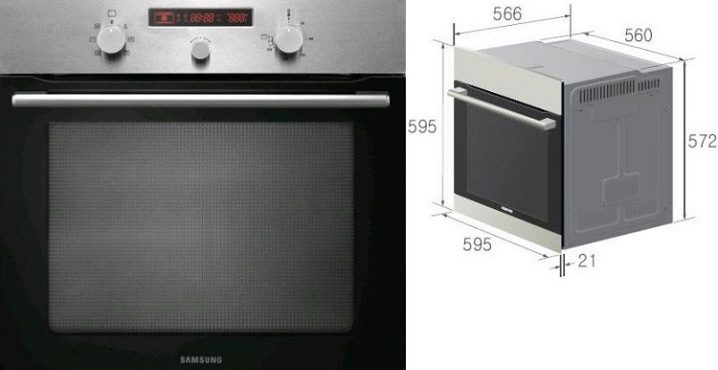 Samsung BTS14D4T – это автономный духовой шкаф, в котором можно готовить одновременно два блюда. При желании из двух камер можно сделать одну. Есть технология DualCook, что позволяет задействовать как нижний блок, так и верхний. Блюда можно готовить с соблюдением индивидуальных температурных параметров. Агрегат отличается хорошими термоизоляционными свойствами (категория А). Объем духового шкафа – 65,5 литров.
