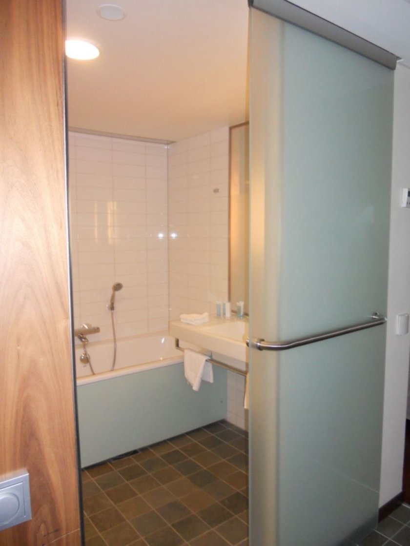 Что касается раздвижной двери, то с ее помощью можно сэкономить пространство, но для ванной они не подходят, так как являются больше ширмой, нежели дверью. У них нет порога и они не способны обеспечить необходимую тепло и звукоизоляцию. Больше раздвижные варианты подходят для душевой кабины или в качестве шторы под ванну.
