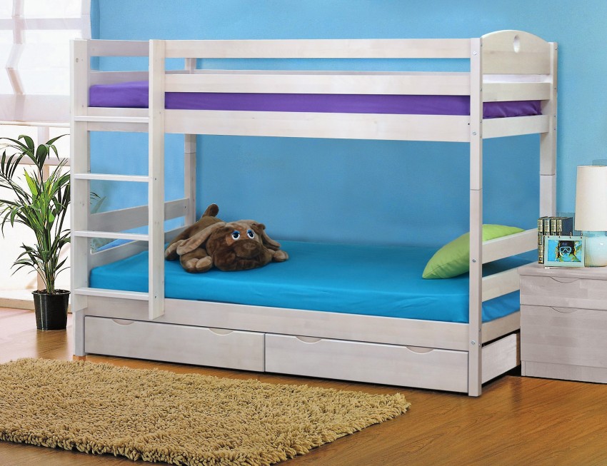 Двухъярусная кровать из прочного мебельного щита прослужит владельцу много лет
