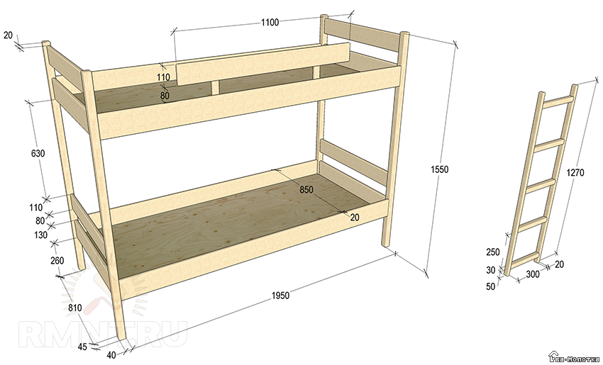 Двухъярусная кровать из обрезной доски — экономный и простой в изготовлении вариант