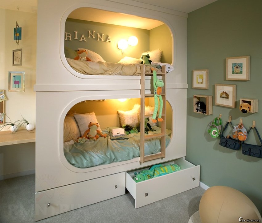 А теперь несколько идей дизайна, которые могут вдохновить на создание оригинальной двухъярусной кровати