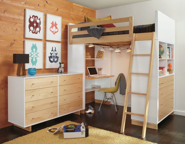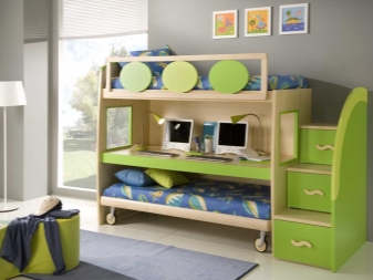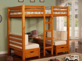 Кроме того, в последнее время нередко встречается смешанный вариант такой мебели, который включает в себя два спальных места плюс рабочее пространство, которое, кстати, подходит не только для детей, но и для взрослых.