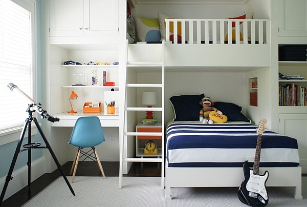 Изысканная двухъярусная кровать-чердак небольших размеров. От Christopher Burns Interiors