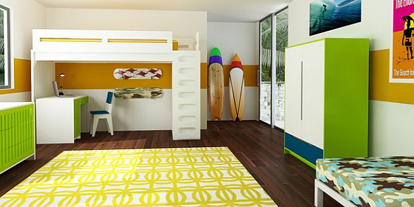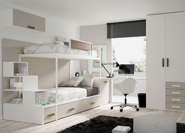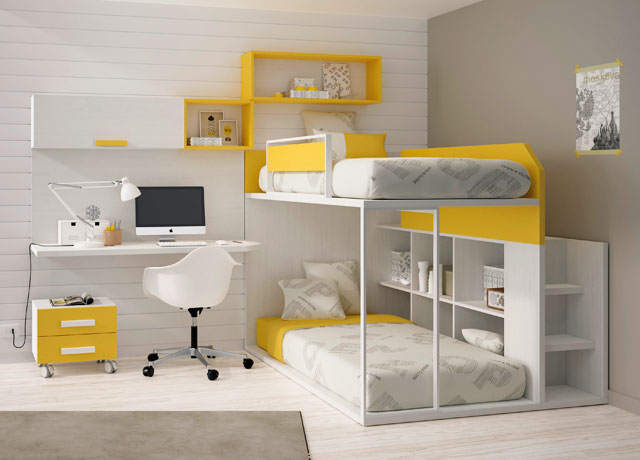 Творческий дизайн двухъярусной кровати со встроенным письменным столом. От aldovega