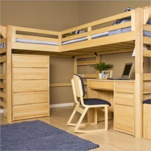 Высота кровати – еще один важный фактор. Так, если расстояние от верхнего яруса до потолка будет слишком малым, спать на такой конструкции будет тесно и душно. С другой стороны, низкая кровать сделает неудобным доступ к столу, а потому все должно быть точно просчитано. При отсутствии в каталогах нужной высоты всегда есть возможность изготовления мебели на заказ.