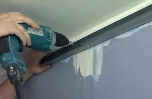 - К нижней части гипсокартона устанавливается вторая часть направляющего профиля.