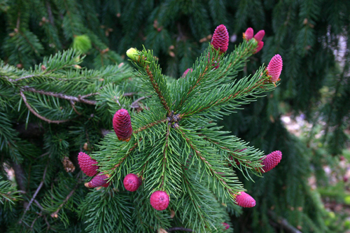 Украшением являются шишки. Особенно красива ель весной, когда она усыпана ими вместе с зелеными побегами.