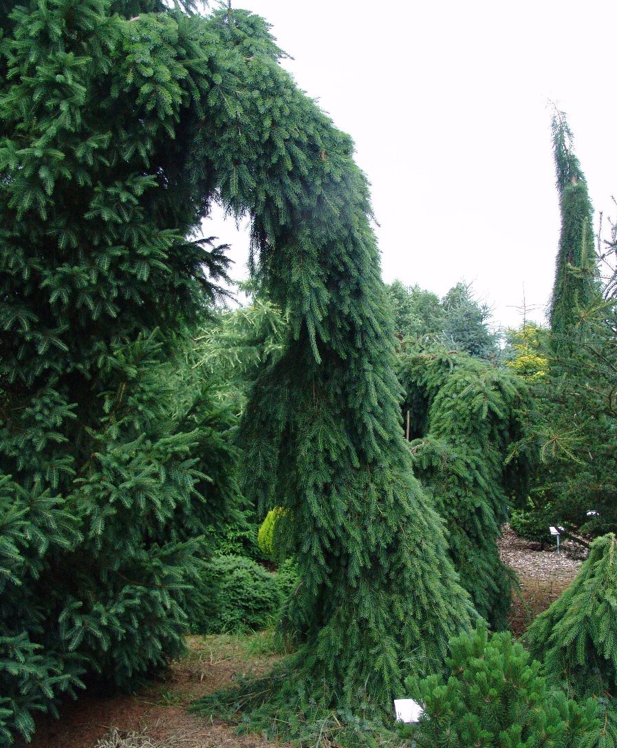 Это название в любом виде обозначает наличие плакучей кроны. Сербская ель такого вида имеет сильно отклоняющийся ствол и густые свисающие побеги.