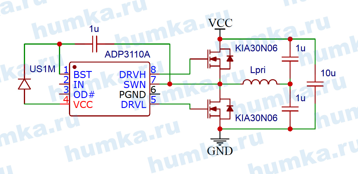 Выходной трансформатор имеет первичную обмотку 24uH и вторичную 465mH (измерения проводились на частоте 1kHz).