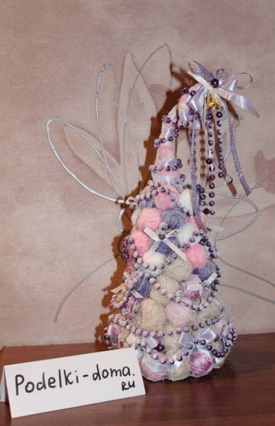Елочка-топиарий в виде конкуса сделана из сизаля, лент и бусин — мастер-класс.