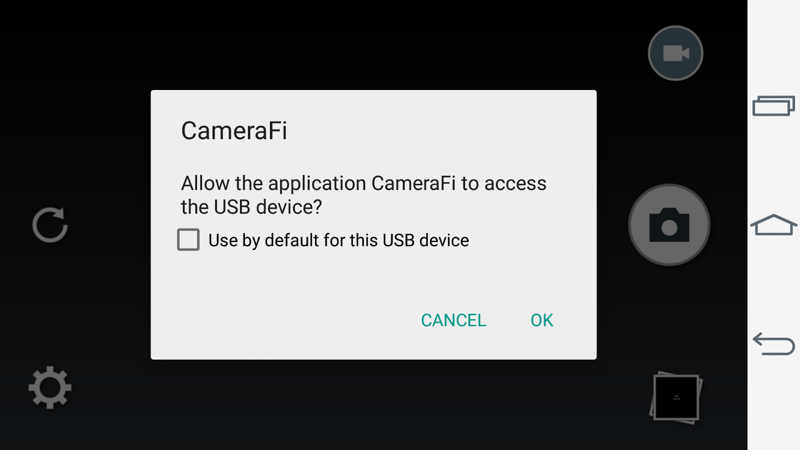 Для работы с WEB камерой через CameraFI, просто подключите камеру к смартфону или планшету и запустите приложение. В появившемся окне, разрешите доступ приложению к тем пунктам, о которых он будет запрашивать. После этого, вы уже можете использовать камеру. При этом, стоит учитывать, что при выставлении в настройках разрешения больше чем может выдать камера, изображение может пропадать.