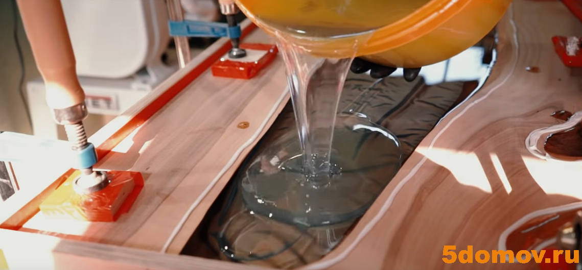 Любая деревянная поверхность, даже идеально отшлифованная, имеет поры, в которые проникает эпоксидка, создавая прочное соединение. Поэтому сочетание материалов является удачным для изготовления эксклюзивной мебели. Эпоксидка для заливки или склеивания деревянных поверхностей чаще применяется прозрачная. Она может также тонироваться в зависимости от дизайнерского замысла.