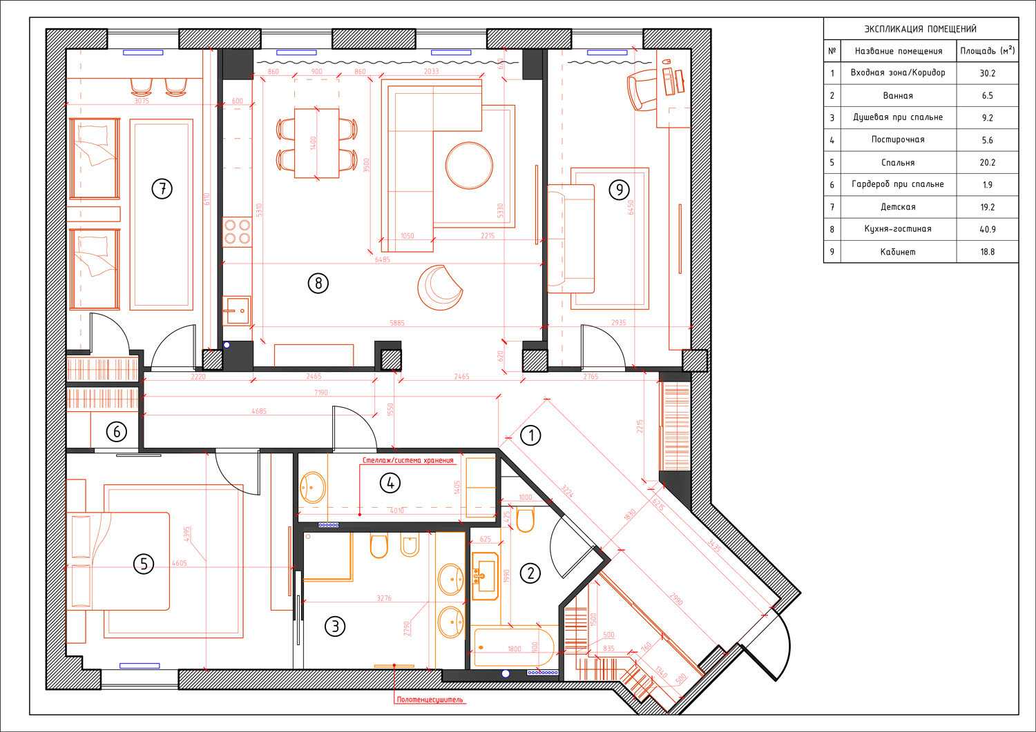 Определите жилую площадь дома и рассчитайте количество предметов интерьера, которые нужно в нем разместить.