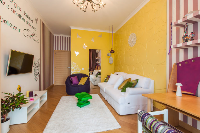 Слишком пестрая квартира в плане сочетания оттенков и текстур вызывает дискомфорт для человека. В подобных условиях наш мозг не может собрать все в единую композицию.
