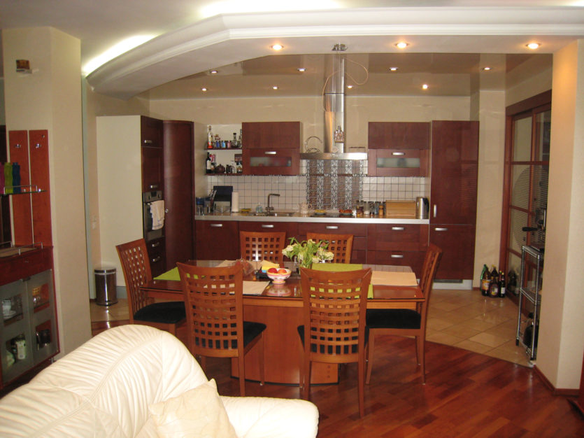 При этом даже на маленькой площади обычно появляется желание разместить и обеденную мебель и диван для отдыха. В принципе зонирование и эргономика современной гостиной предусматривает такой вариант.
