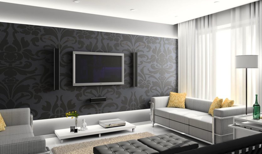 Это позволит значительно визуально увеличить комнату, и при этом единственный момент, на который стоит обратить внимание – это то, чтобы расстояние от сидящего человека до экрана телевизора было не меньше двух или лучше даже трех метров, а изображение было чуть ниже уровня глаз.