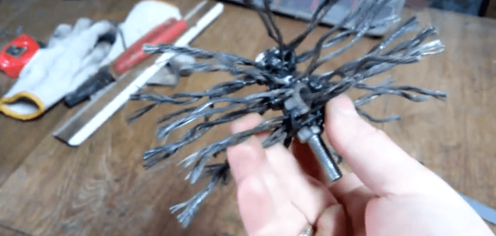 - формируется ерш путём сгибания вокруг шпильки мерных отрезков проволоки или корда пополам. Щетина должна располагаться равномерно по всей окружности. Так будет обеспечена максимальная площадь чистки;