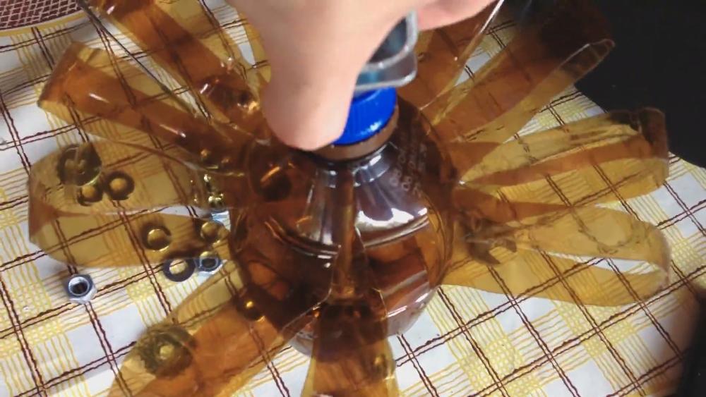 Поэтапное изготовление ерша для дымохода из пластиковых бутылок