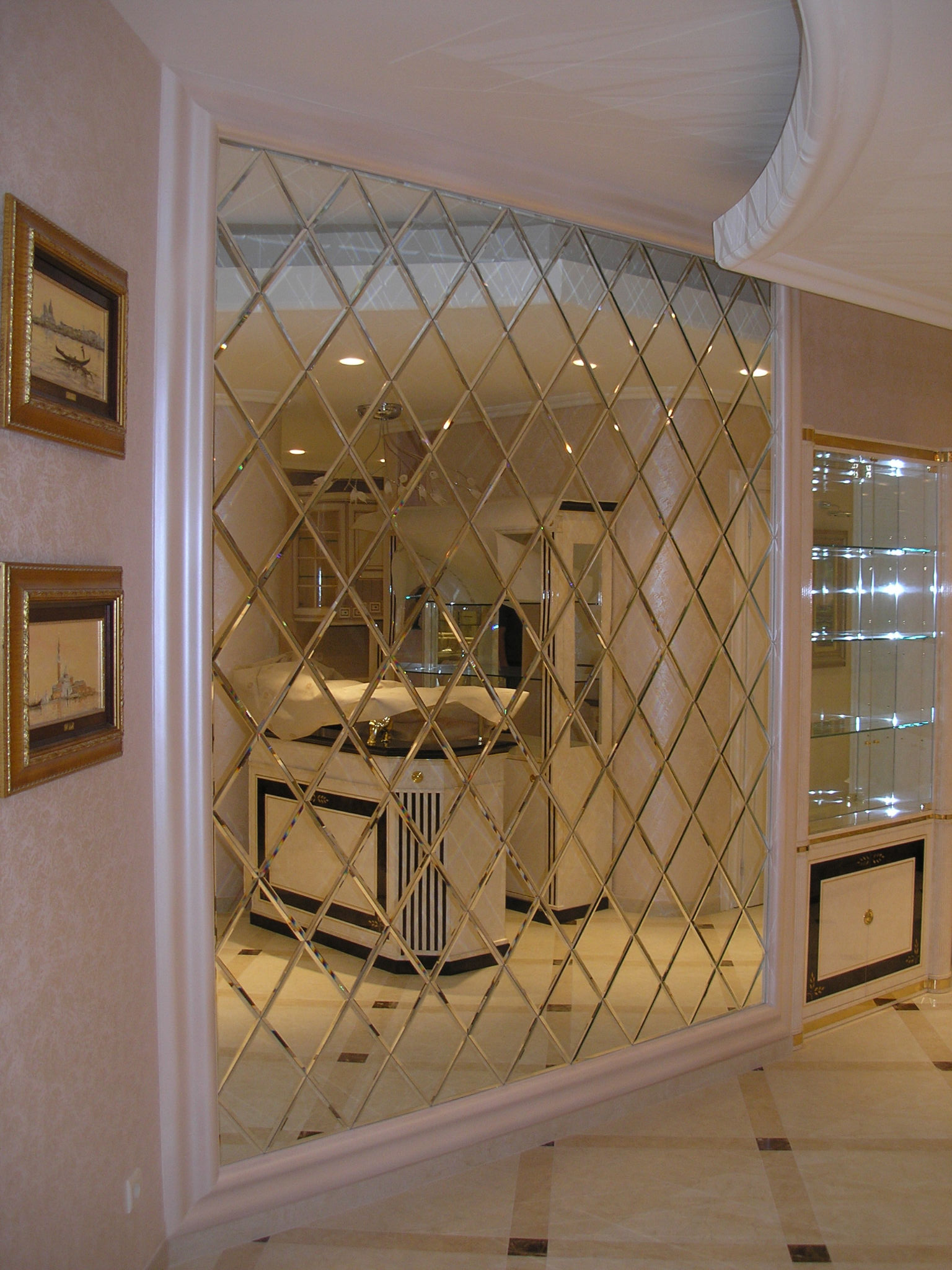 Литая зеркальная стена с фацетной обработкой;