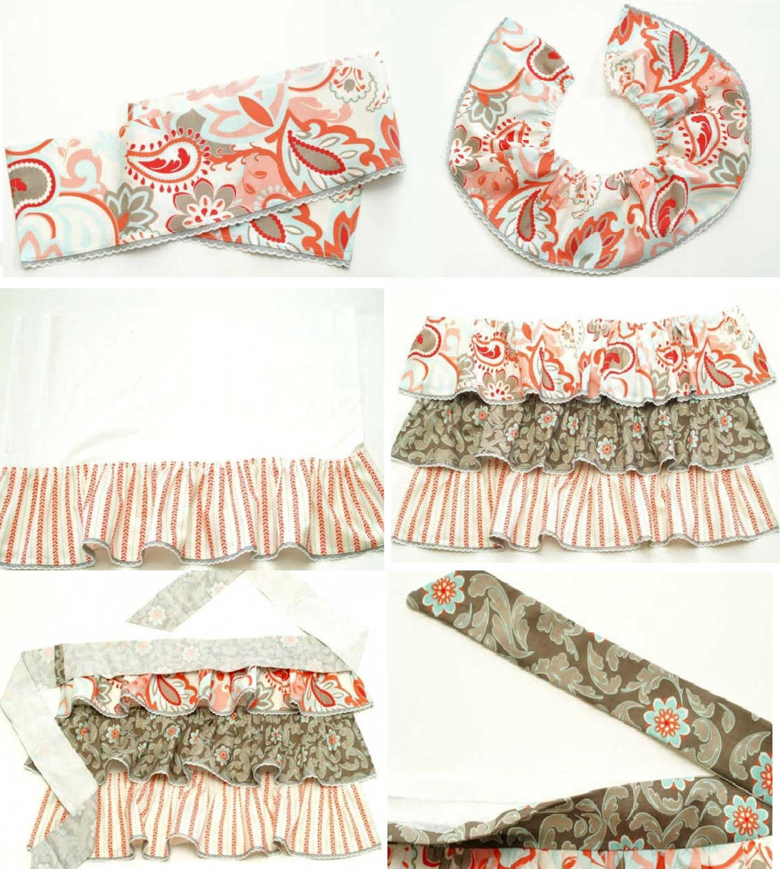 Вариантов декора много. Можно расположить оборки на переднике друг над другом, для отделки использовать тесьму, украсить готовое изделие искусственными цветами. Конечный результат будет зависеть от фантазии швеи.