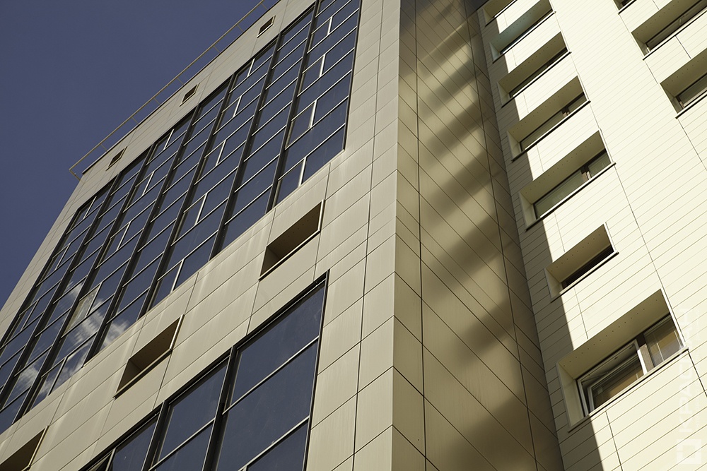 Композитный материал хорошо защищает стены здания от перегрева на солнце. Это не теплоизолирующий материал. Функционирует материал в температурном режиме от минус 50 до плюс 70. Алюминий, как и любой другой металл, имеет термическое расширение. Это значит, что при повышении температуры он расширяется, при снижении – сужается. И, если бы производители не предусмотрели места компенсации ( т.е. снижение влияния температур на внешний вид) термического расширения, то кассету бы вело, расходились бы русты на фасаде, кассета вспучивалась или же наоборот становилось впалой.
