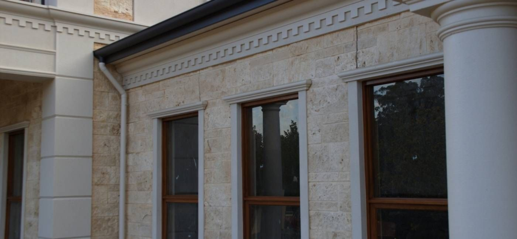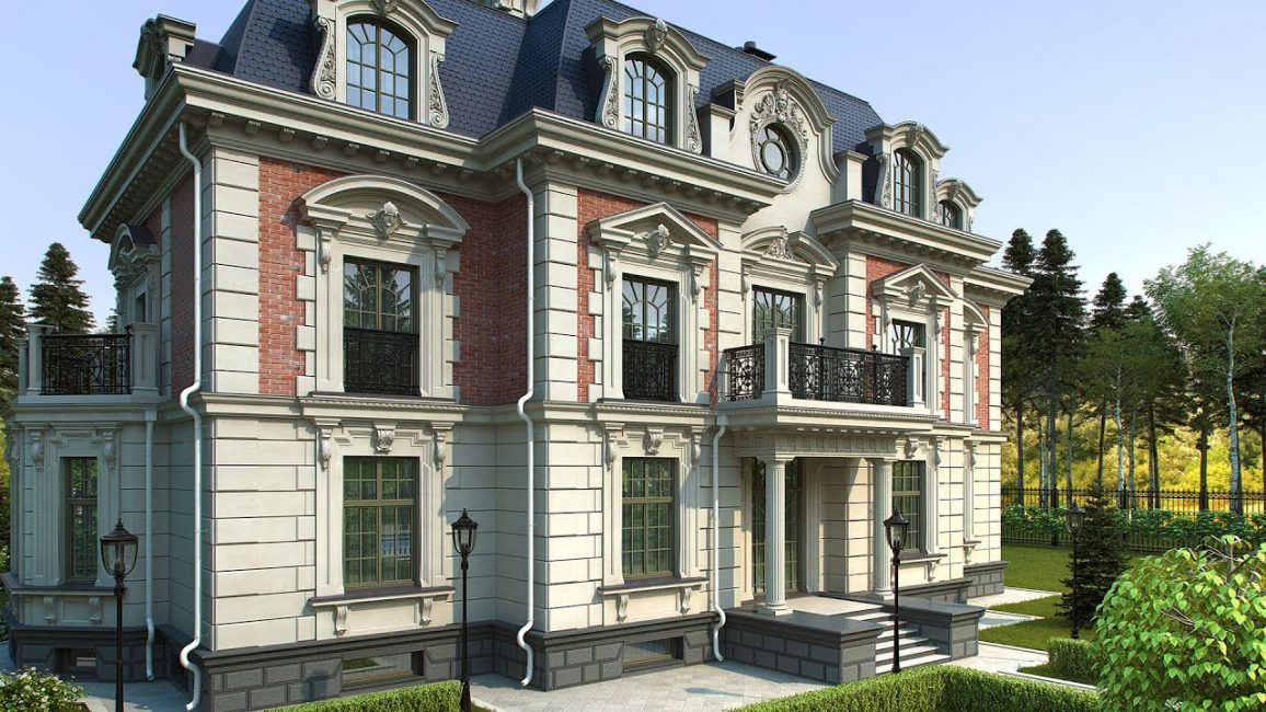 Для данного стилистического решения лучшими материалами станут: штукатурка, камень, кирпич. На фасаде должны появиться колонны или, как минимум, полуколонны, карнизы, лепнина, сандрики и прочие, присущие стилю элементы. С особой тщательностью в классике оформляются окна. Фасадные цвета – пастель или сочные, но не кричащие краски.