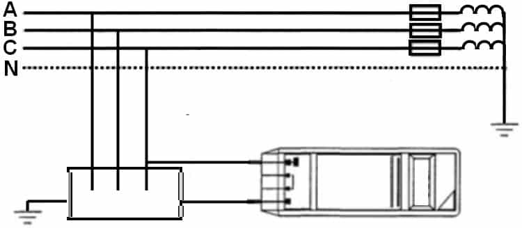 - Для проверки надежности заземления электрооборудования применяется способ подключения, приведенный ниже.