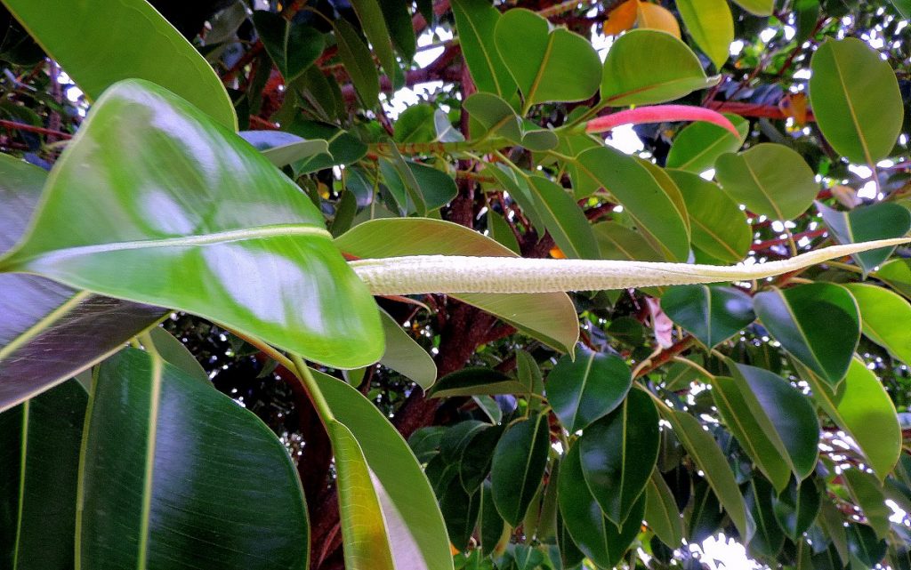 Ficus elastica cv. ‘Belize’ Фикус эластика ‘Белиз’ – листья широкие, около 23-25см длиной и 13-15см шириной, с розовым оттенком и большими