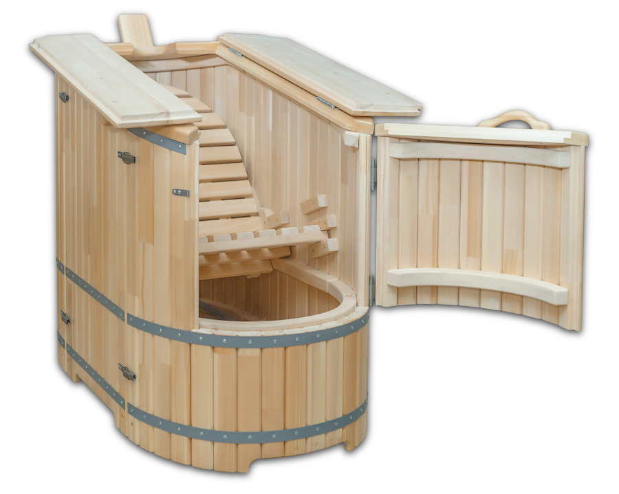 Это миниатюрная парная, которую вы сможете установить куда угодно. Она способствует природному оздоровлению вашего тела. Принцип работы строится на лечебном влиянии на ваш организм кедра и пара.