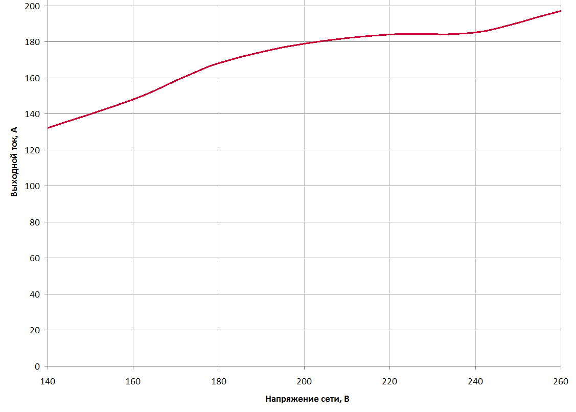 Наименьший сварочный ток агрегата составляет 15 А, максимальный – 180 А (при условии, что в сети присутствует стандартное 220-вольтное напряжение). В тех случаях, когда сетевое напряжение не соответствует нормативному показателю, сила тока может быть немного меньше (порядка 140–160 А).