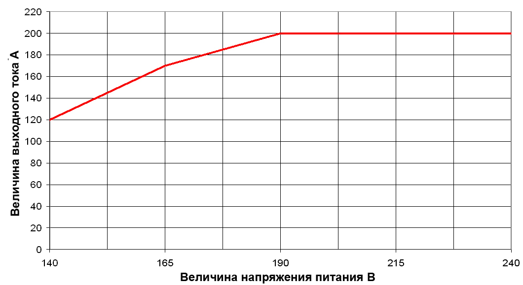 При значениях напряжения питания 187…242 В гарантированы стабильные выходные характеристики аппарата.