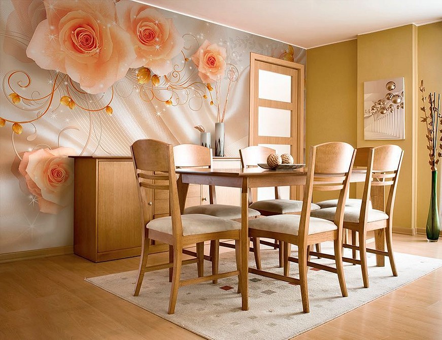 Чтобы создать уютный интерьер, недостаточно приобрести модные обои: важно продумать, где обои для столовой и кухни будут смотреться наиболее гармонично. Предлагаем вам несколько вариантов создания красочного, но комфортного и располагающего к семейным вечерам дизайна этой комнаты