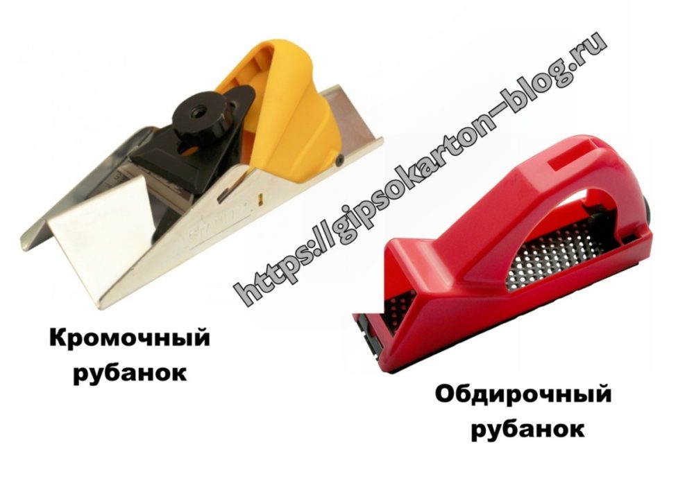 Наждачная бумага или напильник для обработки торцов не годится – вид становится неопрятным, срез лохматится по волокнам, из пласта высыпаются крошки. Соединение листов гипсокартона становится проблематичным. Для таких работ нужно применять рубанок для кромок гипсокартона. Есть 2 типа: