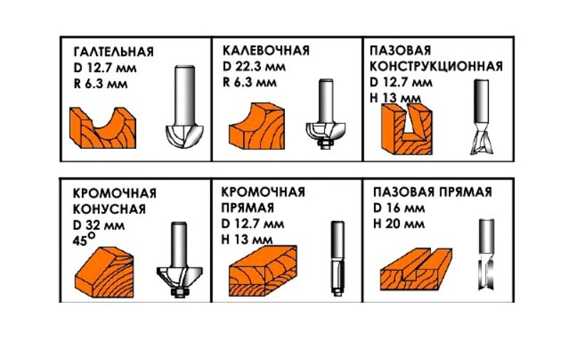 В принципе, насадки для фрезерования дрелью ничем не отличаются от обычных, они даже не выделяются в отдельный класс. Поскольку работа с металлом для фрезера из ручной дрели невозможна, рассмотрим разновидности фрез по дереву.