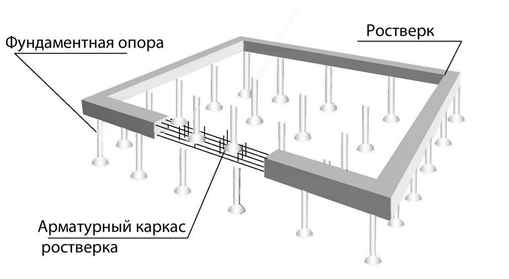 Ростверк объединяет части в единый каркас. Узлы, элементы системы дружно противостоят скручиваниям, сдвигам, прогибам, кренам.