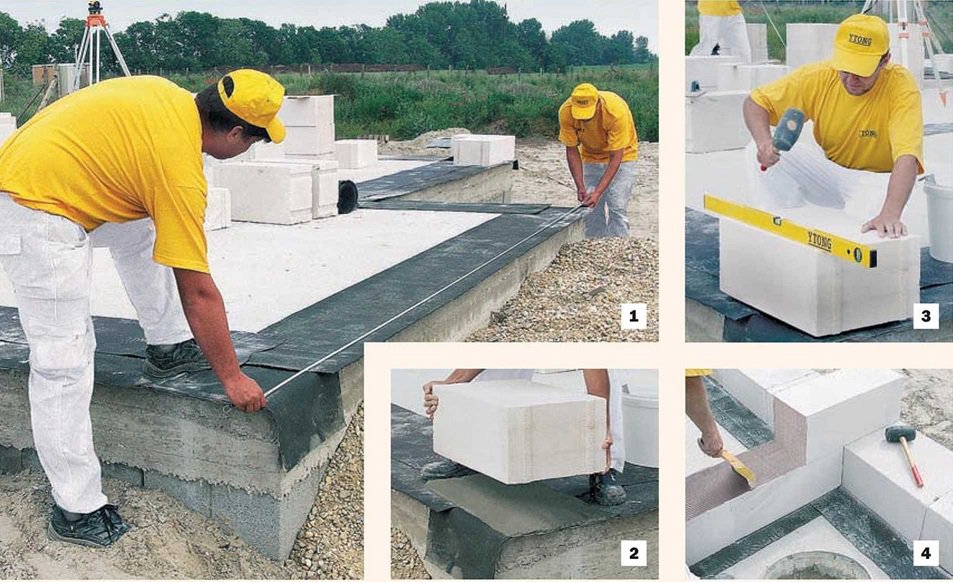 - ячеистые материалы, обладающие высоким водопоглощением, монтируют на слой отсечной гидроизоляции по верху цоколя;