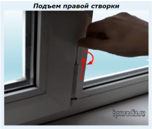 - когда створка задевает раму нижней частью со стороны ручки – створка должна быть поднята и немного повернута вверх, в сторону крепления;
