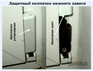 - демонтируется пластиковая пластина с нижней петли;