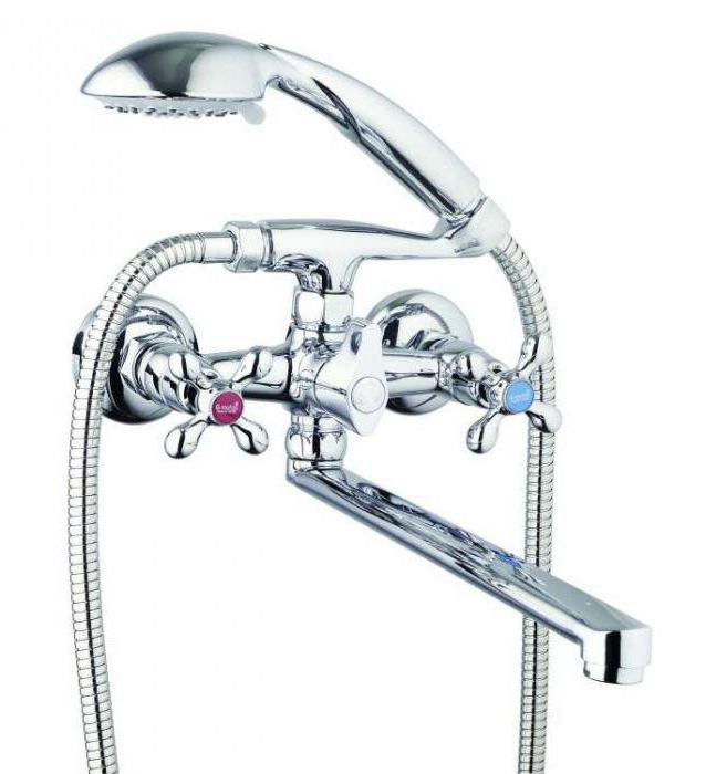 Смесители для ванной комнаты производятся из тех же материалов, что и кухонные краны: это латунь, силумин, цинковые сплавы. Внутри водораспределительного механизма имеется усиленный керамический картридж, обеспечивающий движение потока воды в нужном направлении.