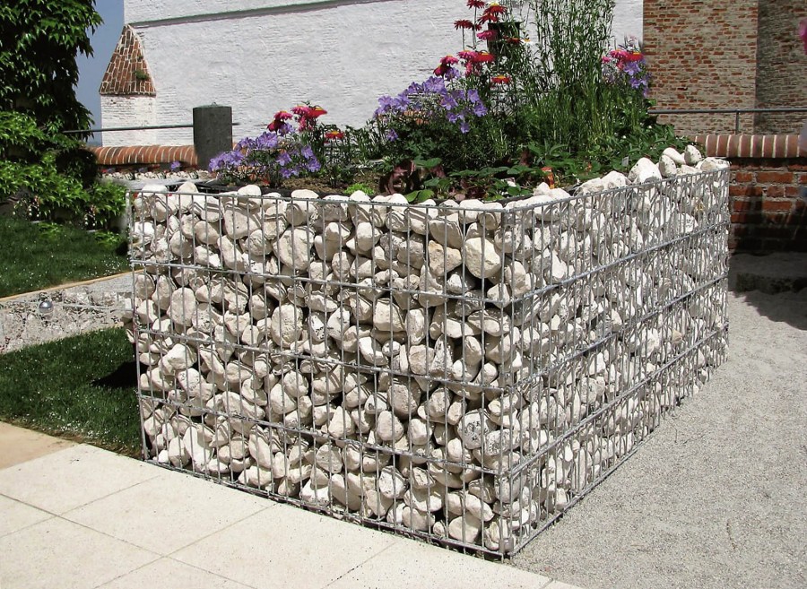 Рисунок 3. Для изготовления клумбы габионного типа потребуется галька, металлическая сетка и стальная оцинкованная проволока.