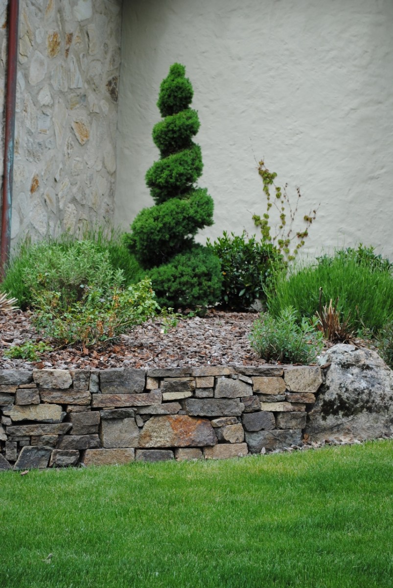 Качественное преображение территории в саду можно увидеть на фото клумбы из камней, выложенной в форме террасы. В качестве материала применяют кварц, базальт или гранит, обладающие повышенной прочностью. А известняк с песчаником помогут сформировать горный вид.