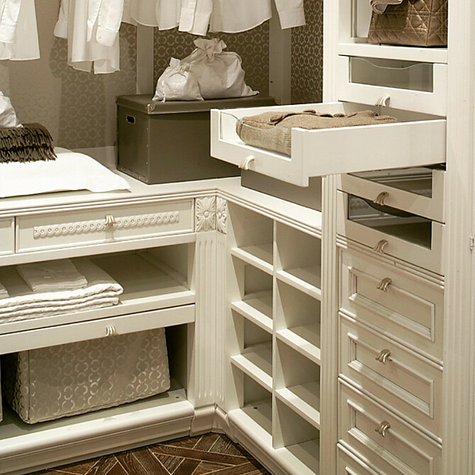 Более того, и мебель производилась по единым стандартам. И когда гардеробные комнаты вошли в моду, обустраивать эти помещения стали, ориентируясь на созданные образцы.