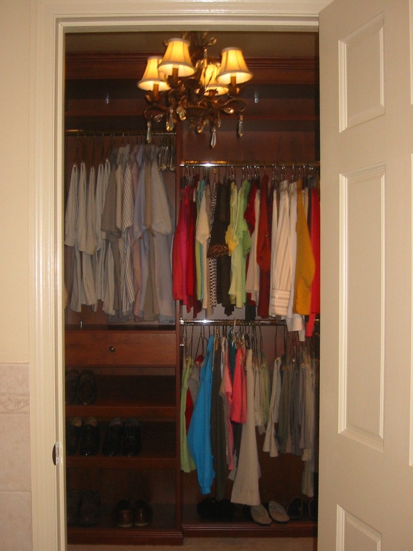 Внутренняя организация маленькой гардеробной из переделанной кладовки