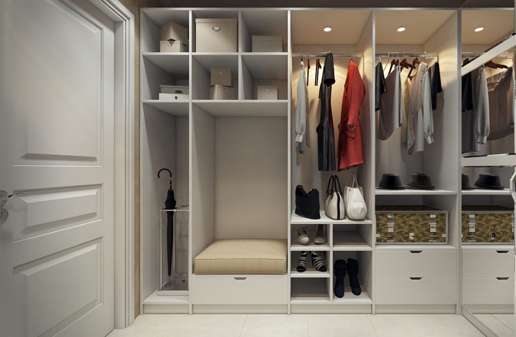 Найти место под гардеробную можно в зависимости от размера прихожей: