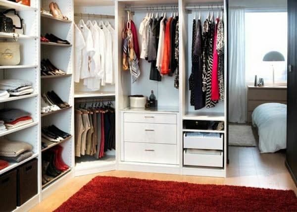 Перед планировкой угловой гардеробной комнаты нужно определить, какие вещи там разместить. Ведь она послужит шкафом для повседневной одежды, сезонной одежды и местом, заменяющим кладовую – это особенно актуально для однокомнатных квартир.