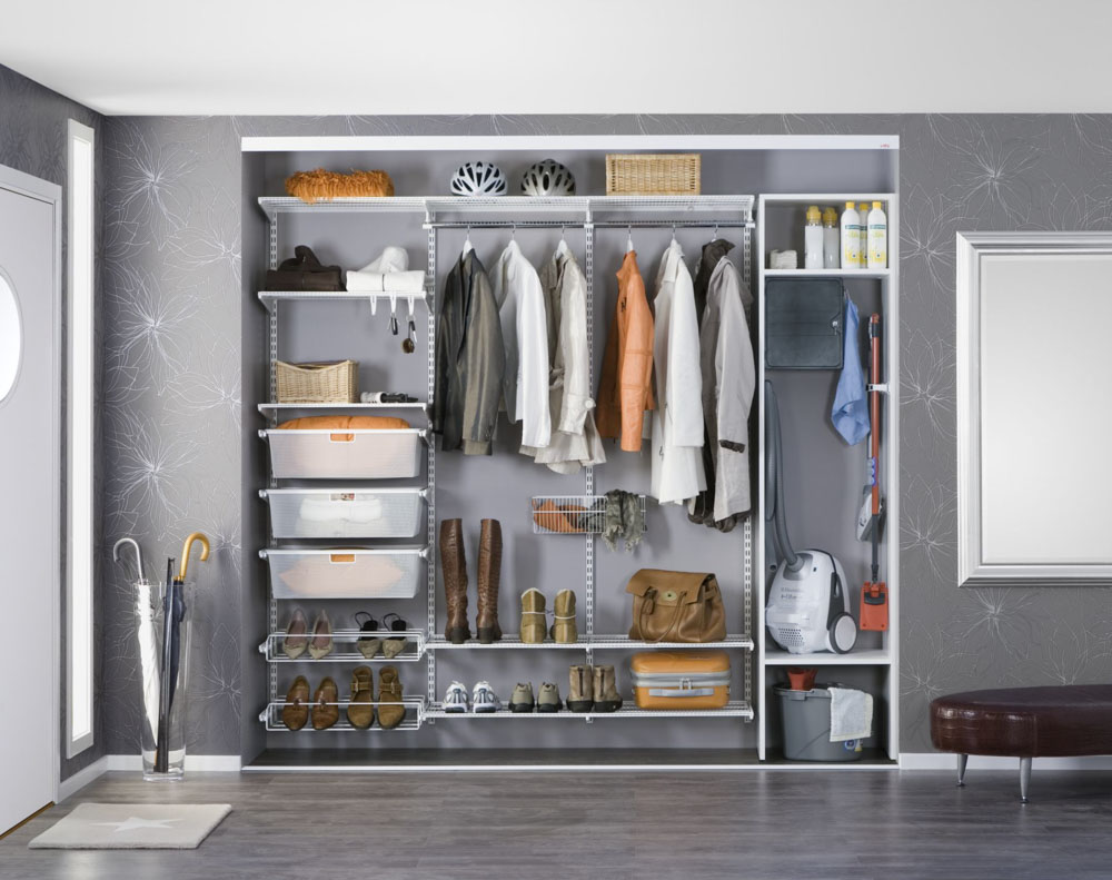 Внутреннюю часть заполняют полками, рейлингами, обувницами, корзинками и коробками.