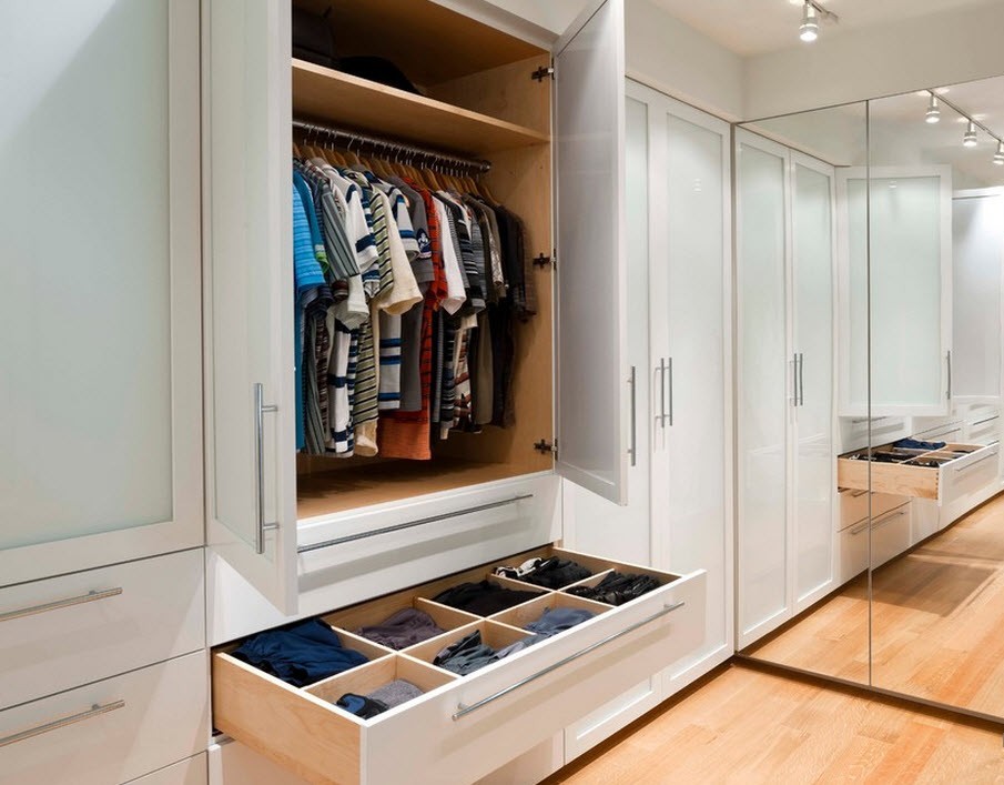 Кроме строения и формы гардеробных, важен их дизайн, который может дополняться следующими вариациями: