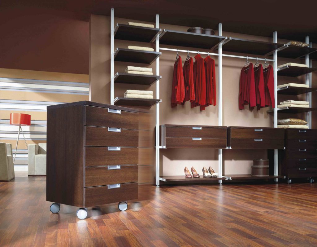 Оборудования для гардеробной лучше использовать из металлических или пластиковых материалов.